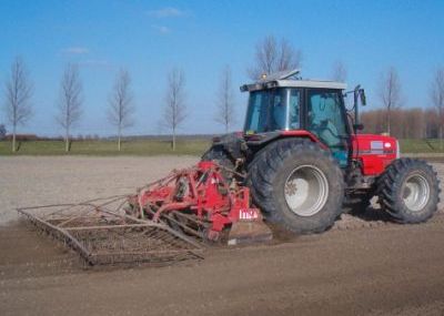 De grondbewerking voor het zaaien met 4 meter kopeg met daarachter een onkruideg